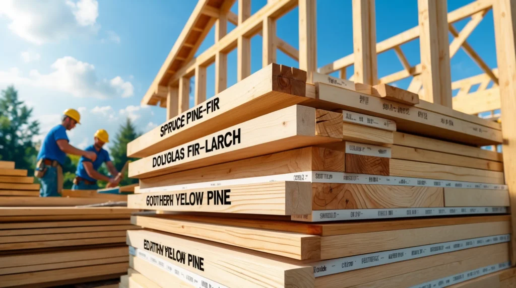 - Douglas Fir–Larch (often stamped DF-L): Known for good strength and stiffness. Many builders like it for joists, rafters, and beams.